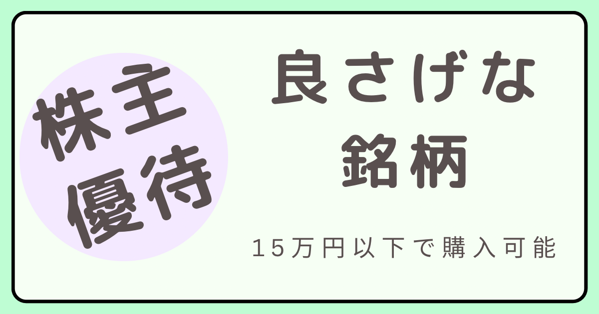 15万円以下で購入可能な株主優待がもらえる株式銘柄